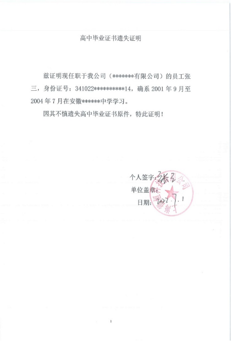 4 | 高中遗失证明 | 文本文件 | 1份 | 直接打印出来,当前单位盖章。 |